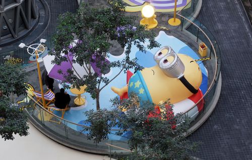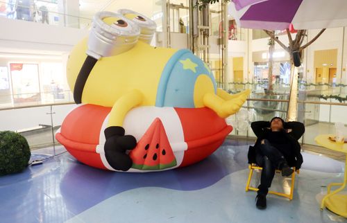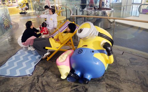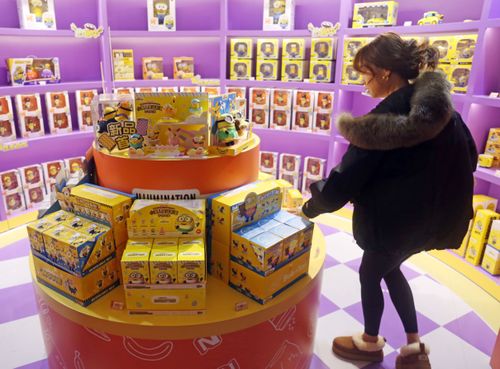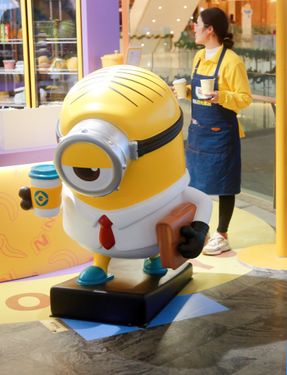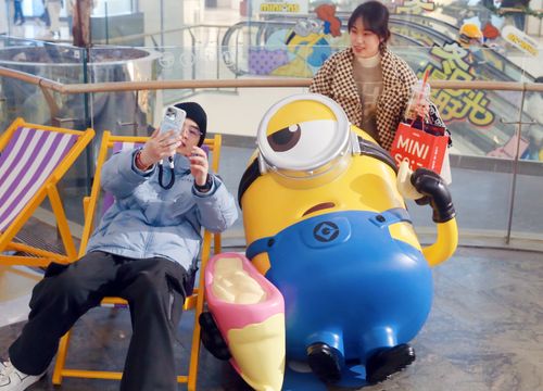 图片说明:2024年12月8日,上海,凯德集团商场首度携手好莱坞环球影业举办动画明星小黄人为主题的IP萌趣展迎新年,吸引众多消费者打卡。