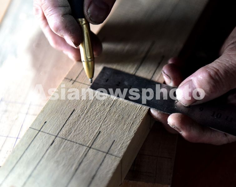 2024年12月11日,安徽含山,司绍荣在加工“记里鼓车”所需木料。