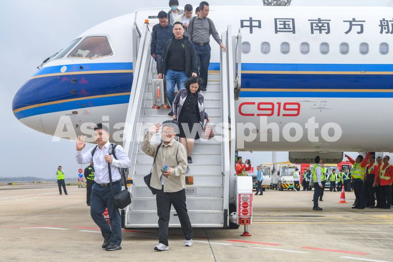 2024年12月11日,国产大飞机C919在海南海口顺利完成商业飞行“首秀”,见证“首秀”的乘客开心下机。