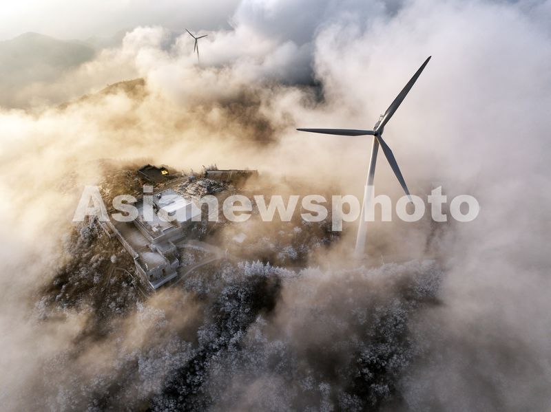 据了解,这是东白山入冬后的首次雾凇,拉开了东白山冬日冰雪世界的序幕。雾凇非冰非雪,形成的条件相当苛刻,既要求低温天气,又要求空气中有充足的水汽,还要求有适当的风速……是江南冬日少见的奇景。虽然洁白晶莹的雾凇在阳光照耀下透着丝丝凉意,但是挡不住慕名前来赏景游客的热情,前来游玩的市民络绎不绝。航拍镜头中,蓝天之下、白云之上,漫山遍野的雾凇在云雾中若隐若现,犹如仙境。