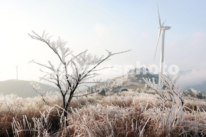 2024年12月12日,浙江省东阳市东白山上雾凇漫卷、玉树琼枝,风景美如画,上山沿途中,山脚下还没有什么冬日的氛围,高海拔的山顶却是冰雪世界,强烈的反差感让人欣喜不已。