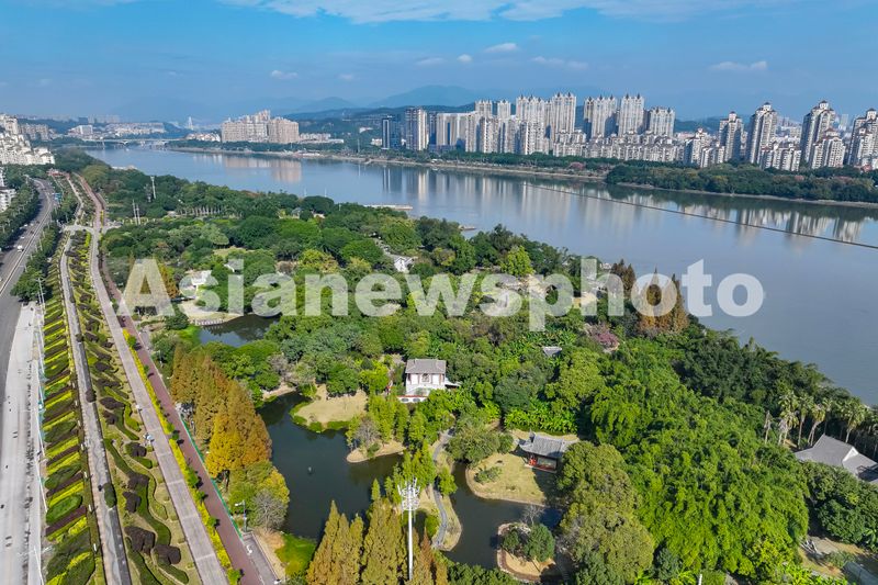 图片说明:2024年12月11日,福建省福州市仓山区的闽江公园南园,沿闽江河岸婉蜒排列的水杉、榕树等绿植,与湿地、城市高楼相互映衬,成为榕城冬日一道靓丽风景线。
