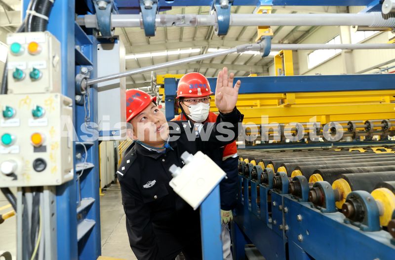 2024年12月12日,江苏省宿迁市公安局宿豫分局高新区派出所民警在企业检查生产设备运行情况,排查安全隐患。