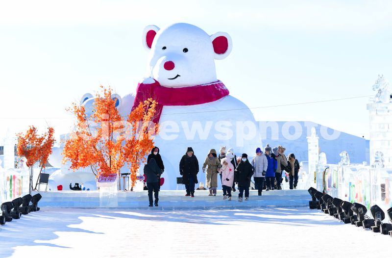 2024年12月12日,游客在满洲里“冰雪童谣”主题乐园游览。