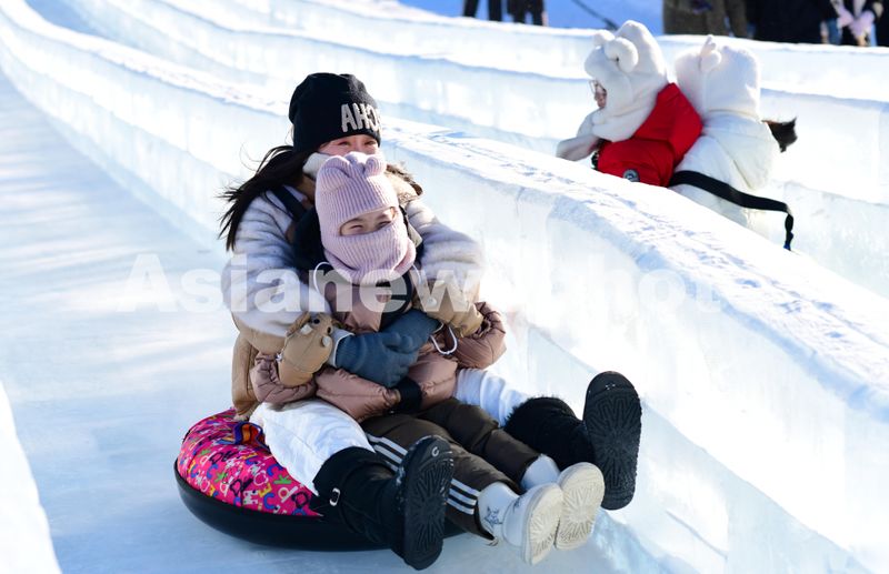 2024年12月12日,游客在满洲里“冰雪童谣”主题乐园体验趣味冰雪运动。