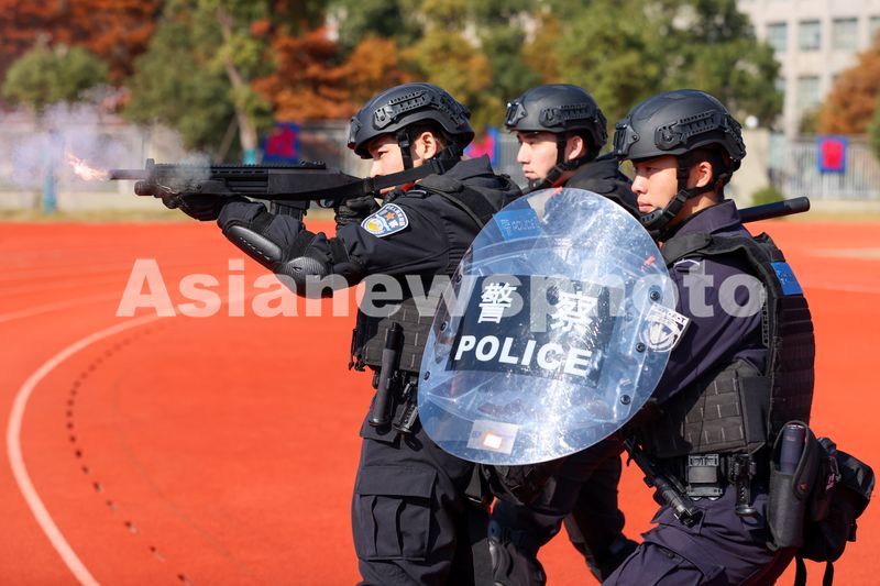 图片说明:2024年12月16日,浙江省舟山市公安局巡特警支队队员正在进行长短枪应用射击训练。
