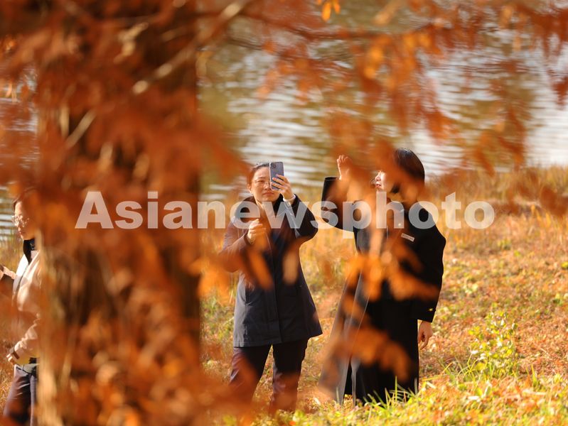 图片说明:12月14日,江苏省盐城市东台市,游客在黄海国家森林公园中游玩、赏景。