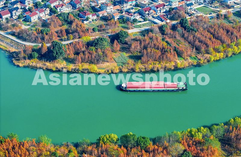 2024年12月16日,长湖申航道浙江长兴吕山段,航道两边水杉树层林尽染与村舍相映成景,运输的船只来往穿梭,构成一片美丽的风景线。长湖申航道作为湖州接轨上海、融入长三角的水运大动脉,承担了该区域大部分的电煤、集装箱、工业原材料、粮食、建材等大宗物资运输,保障长三角地区生产生活和民生需求。