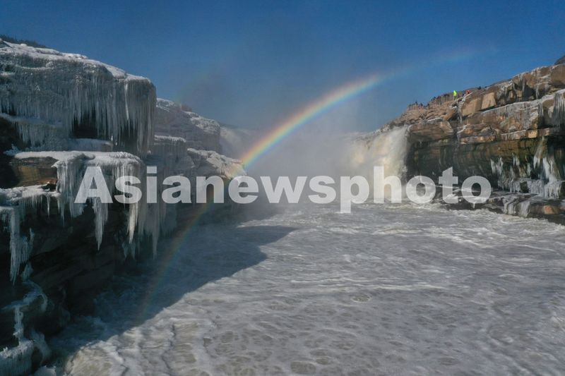 山西吉县:黄河壶口瀑布现冰挂彩虹景观 查看组图