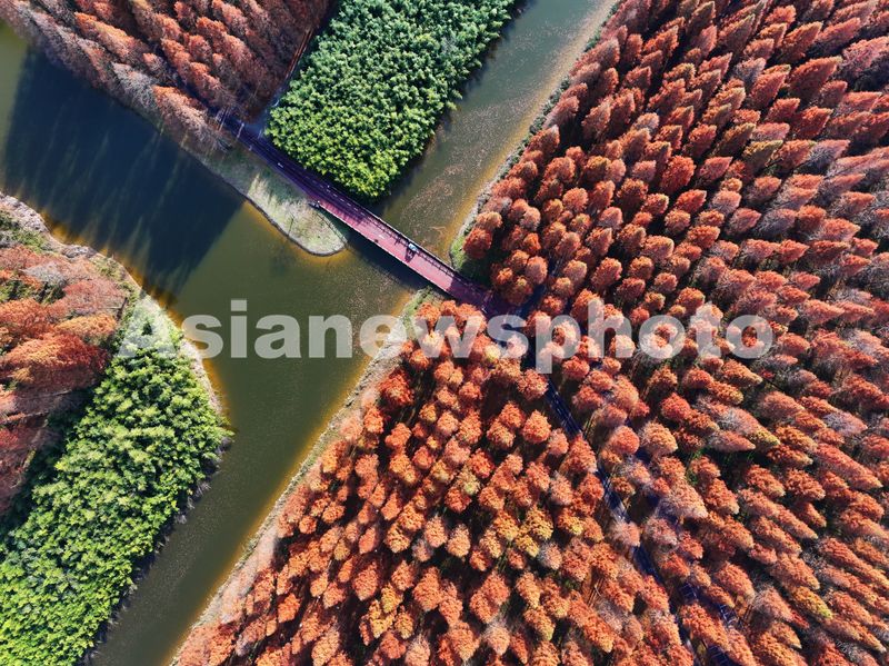 图片说明:12月14日,江苏省盐城市东台市,游客在黄海国家森林公园中游玩、赏景。