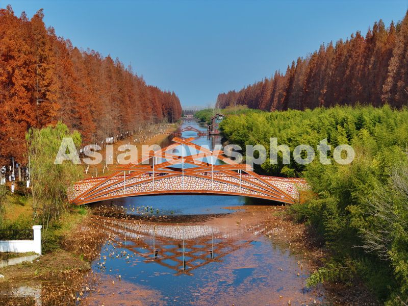 图片说明:12月14日,江苏省盐城市东台市,游客在黄海国家森林公园中游玩、赏景。