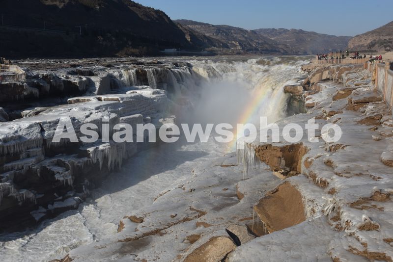 山西吉县:黄河壶口瀑布现冰挂彩虹景观 查看组图