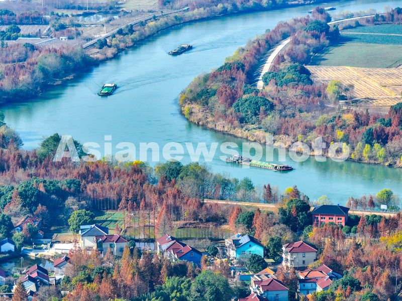 2024年12月16日,长湖申航道浙江长兴吕山段,航道两边水杉树层林尽染与村舍相映成景,运输的船只来往穿梭,构成一片美丽的风景线。长湖申航道作为湖州接轨上海、融入长三角的水运大动脉,承担了该区域大部分的电煤、集装箱、工业原材料、粮食、建材等大宗物资运输,保障长三角地区生产生活和民生需求。
