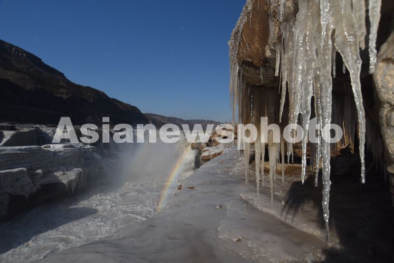 山西吉县:黄河壶口瀑布现冰挂彩虹景观 查看组图