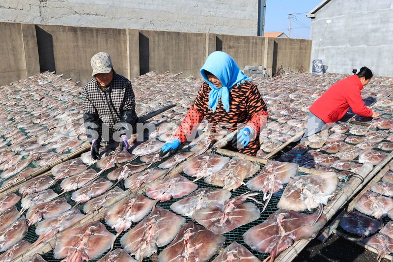图片说明:2024年12月14日,江苏省连云港市赣榆区柘汪镇马站村渔民在晾晒鱼干。