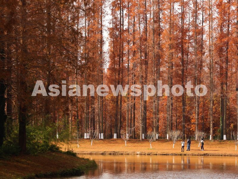图片说明:12月14日,江苏省盐城市东台市,游客在黄海国家森林公园中游玩、赏景。