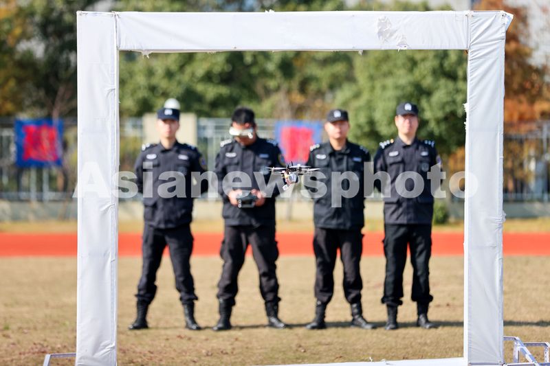 图片说明:2024年12月16日,浙江省舟山市公安局巡特警支队队员正在进行穿越无人机技战术训练。