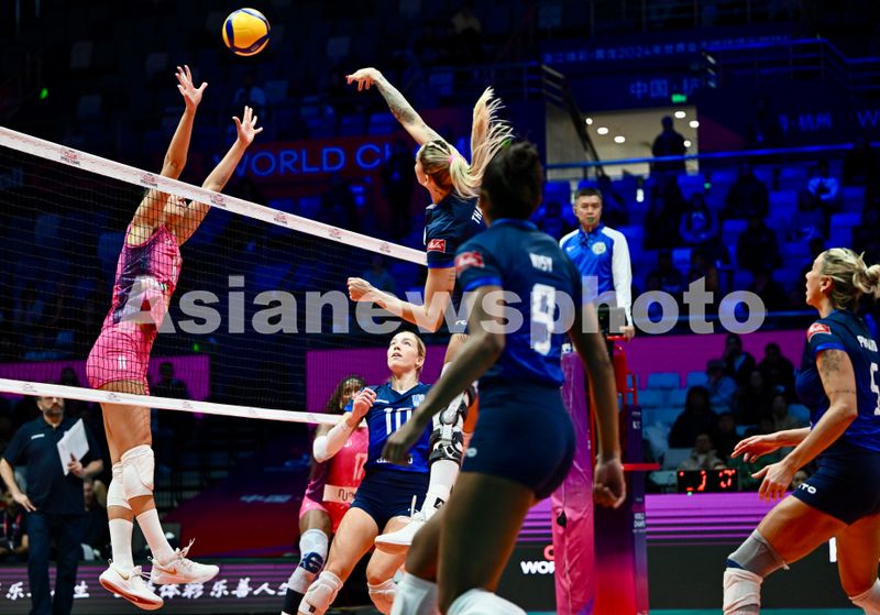 2024年12月17日,2024年世界女子排球俱乐部锦标赛(简称:2024女排世俱杯)揭幕战,在浙江省杭州市黄龙体育中心体育馆举行。意大利米兰女排俱乐部(粉色球衣)3-0(25:17,25:22,27:25)战胜巴西米纳斯女排俱乐部(蓝色球衣),赢得了开门红。