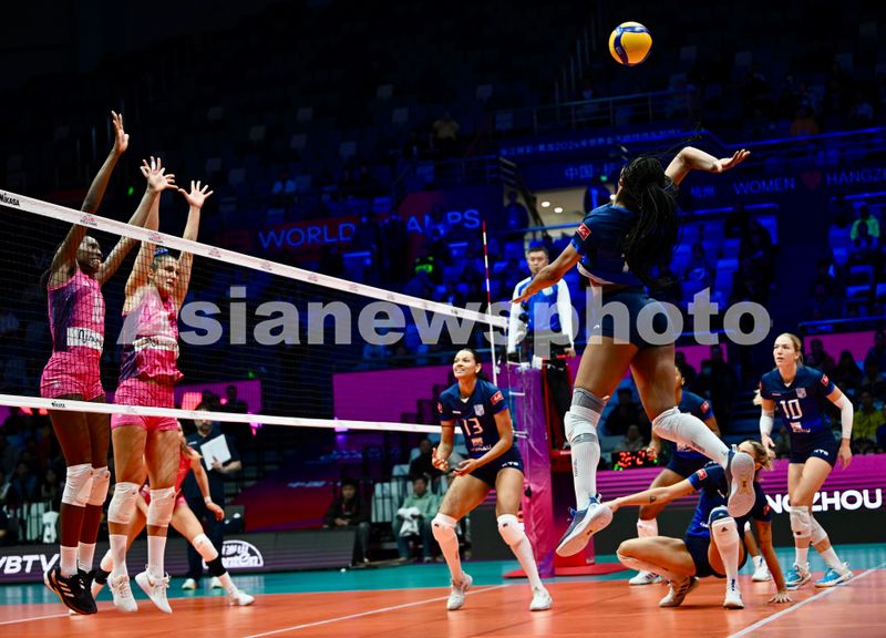 2024年12月17日,2024年世界女子排球俱乐部锦标赛(简称:2024女排世俱杯)揭幕战,在浙江省杭州市黄龙体育中心体育馆举行。意大利米兰女排俱乐部(粉色球衣)3-0(25:17,25:22,27:25)战胜巴西米纳斯女排俱乐部(蓝色球衣),赢得了开门红。