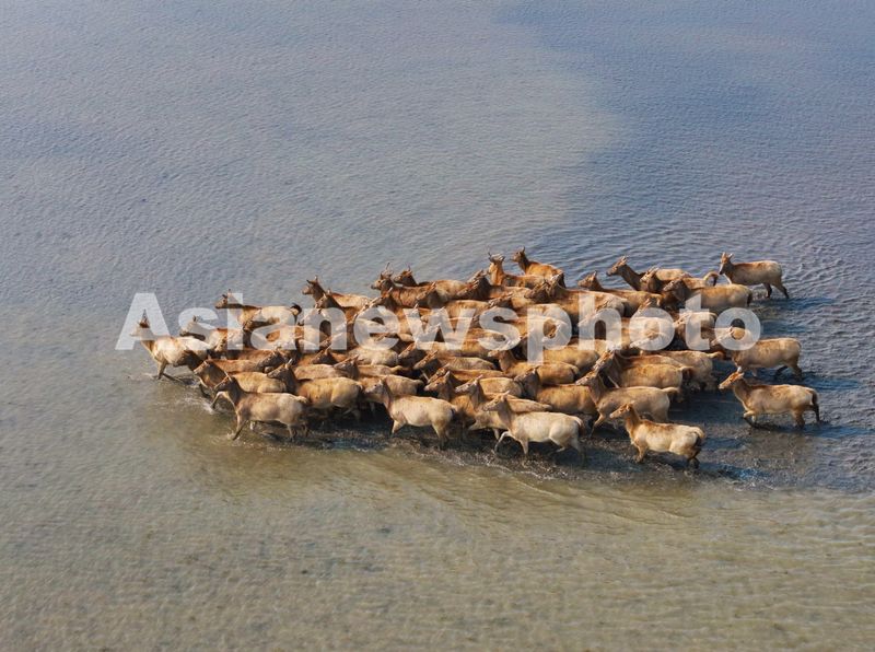 近年来,江苏省盐城市坚定践行“绿水青山就是金山银山”理念,加大滩涂湿地生态修复保护力度,生态环境持续改善,黄海野鹿荡的麋鹿种群保持健康稳定增长,成群的麋鹿嬉戏、觅食,构成一幅美丽的冬日生态画卷。