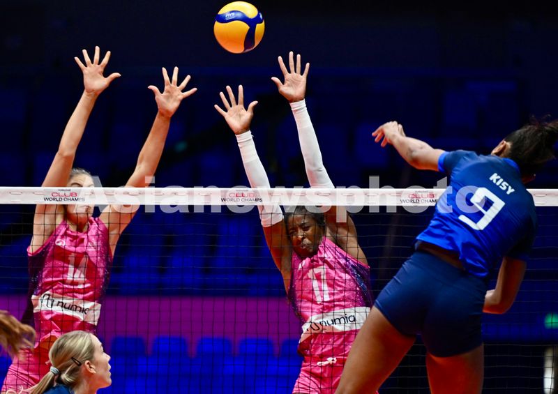 2024年12月17日,2024年世界女子排球俱乐部锦标赛(简称:2024女排世俱杯)揭幕战,在浙江省杭州市黄龙体育中心体育馆举行。意大利米兰女排俱乐部(粉色球衣)3-0(25:17,25:22,27:25)战胜巴西米纳斯女排俱乐部(蓝色球衣),赢得了开门红。