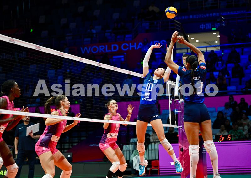 2024年12月17日,2024年世界女子排球俱乐部锦标赛(简称:2024女排世俱杯)揭幕战,在浙江省杭州市黄龙体育中心体育馆举行。意大利米兰女排俱乐部(粉色球衣)3-0(25:17,25:22,27:25)战胜巴西米纳斯女排俱乐部(蓝色球衣),赢得了开门红。