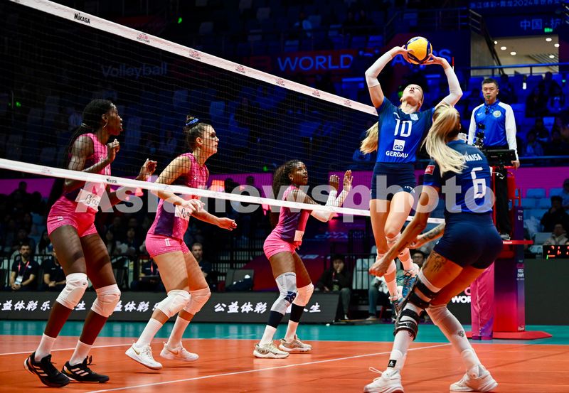 2024年12月17日,2024年世界女子排球俱乐部锦标赛(简称:2024女排世俱杯)揭幕战,在浙江省杭州市黄龙体育中心体育馆举行。意大利米兰女排俱乐部(粉色球衣)3-0(25:17,25:22,27:25)战胜巴西米纳斯女排俱乐部(蓝色球衣),赢得了开门红。