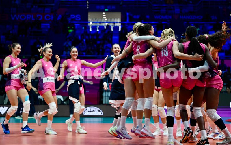 2024年12月17日,2024年世界女子排球俱乐部锦标赛(简称:2024女排世俱杯)揭幕战,在浙江省杭州市黄龙体育中心体育馆举行。意大利米兰女排俱乐部(粉色球衣)3-0(25:17,25:22,27:25)战胜巴西米纳斯女排俱乐部(蓝色球衣),赢得了开门红。