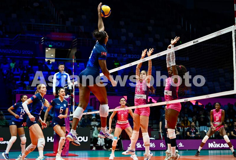 2024年12月17日,2024年世界女子排球俱乐部锦标赛(简称:2024女排世俱杯)揭幕战,在浙江省杭州市黄龙体育中心体育馆举行。意大利米兰女排俱乐部(粉色球衣)3-0(25:17,25:22,27:25)战胜巴西米纳斯女排俱乐部(蓝色球衣),赢得了开门红。