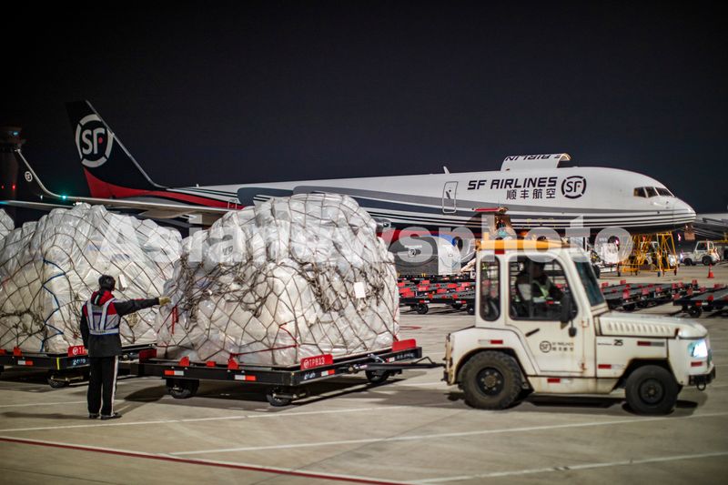 2024年12月12日,湖北鄂州,亚洲第一专用货运机场鄂州花湖机场内一片繁忙,一架接一架专用货机在这里起降,工作人员将一批批货物进行转运装载,保障物流的运行畅通。