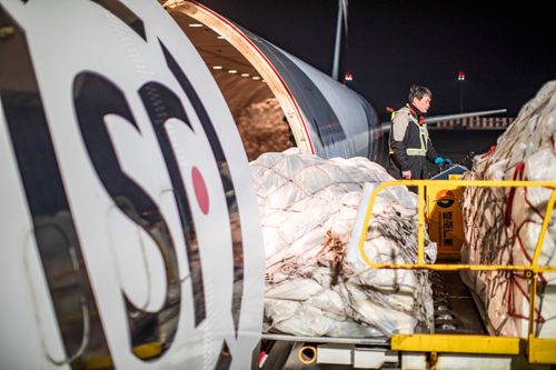 2024年12月12日,湖北鄂州,亚洲第一专用货运机场鄂州花湖机场内一片繁忙,一架接一架专用货机在这里起降,工作人员将一批批货物进行转运装载,保障物流的运行畅通。