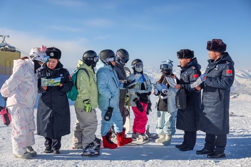 2024年12月17日,新疆出入境边防检查总站阿勒泰边境管理支队吐尔洪边境派出所民警对辖区可可托海滑雪场开展冬季冰雪旅游季护航行动,重点对滑雪场雪板寄存安防管理和关键设施进行安全检查,同时对雪友进行冬季旅游安全提示和边境法律法规宣传,助力驻地企业发展,保障边境冰雪旅游平安。