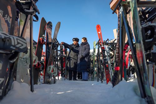 2024年12月17日,吐尔洪边境派出所民警对滑雪场雪板存放处开展安防检查。