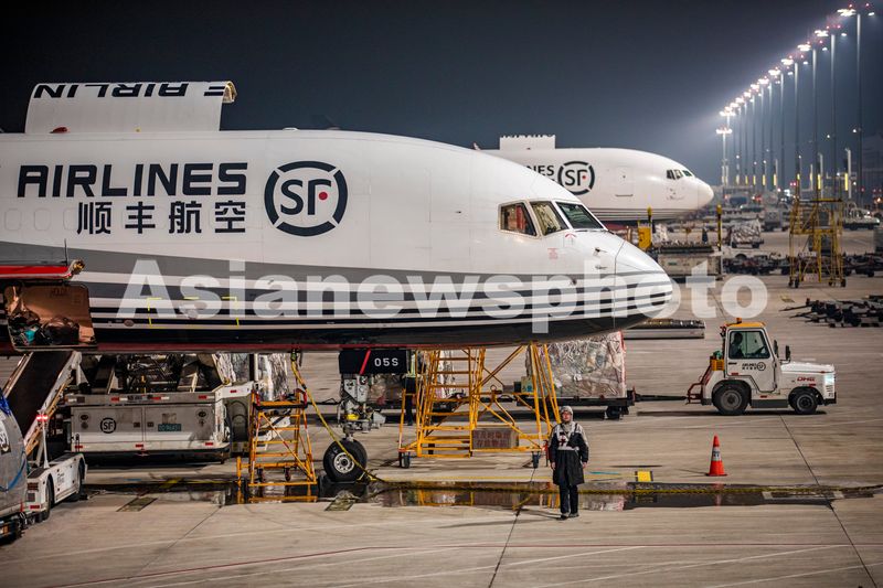 2024年12月12日,湖北鄂州,亚洲第一专用货运机场鄂州花湖机场内一片繁忙,一架接一架专用货机在这里起降,工作人员将一批批货物进行转运装载,保障物流的运行畅通。