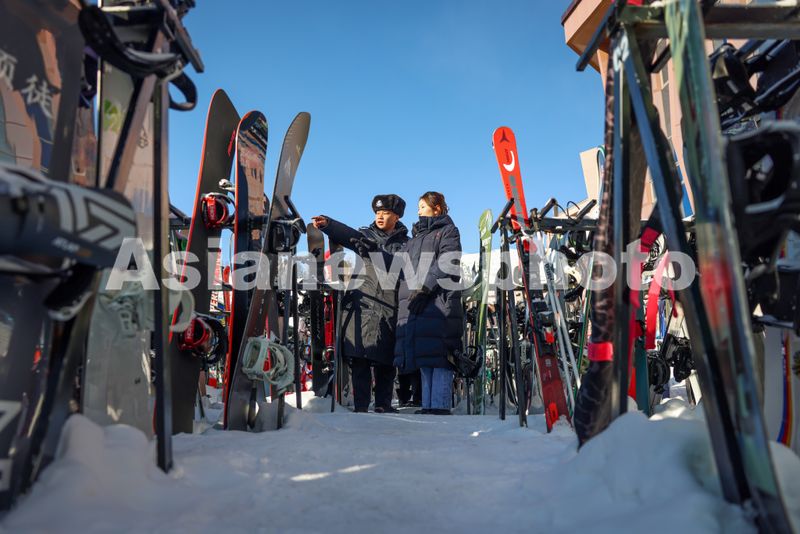 2024年12月17日,吐尔洪边境派出所民警对滑雪场雪板存放处开展安防检查。