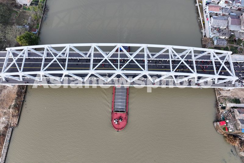 图片说明:2024年12月18日,货船在京杭大运河江苏扬州宝应运河大桥行驶通过。