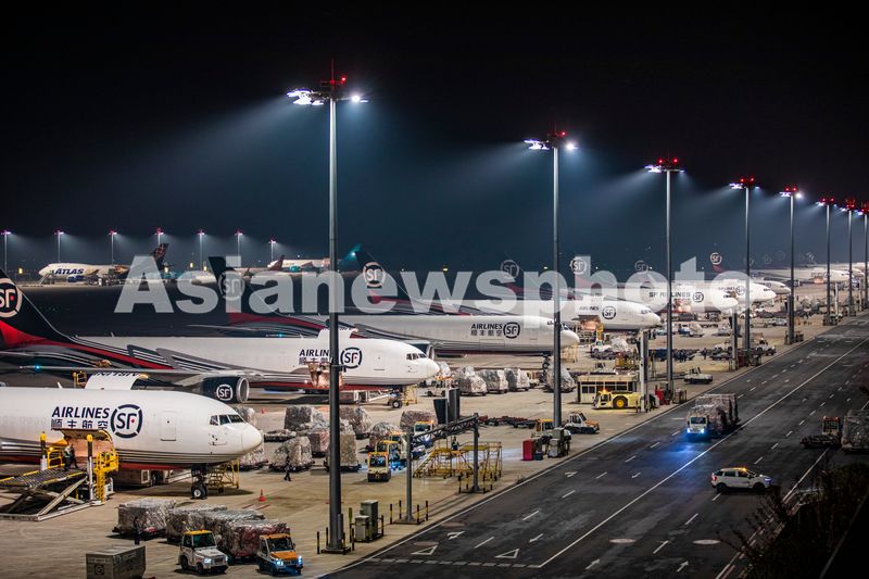 2024年12月12日,湖北鄂州,亚洲第一专用货运机场鄂州花湖机场内一片繁忙,一架接一架专用货机在这里起降,工作人员将一批批货物进行转运装载,保障物流的运行畅通。
