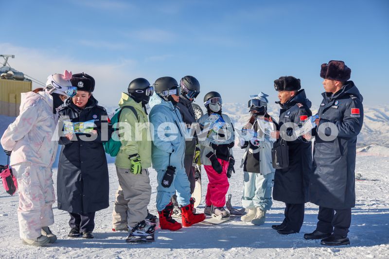 2024年12月17日,新疆出入境边防检查总站阿勒泰边境管理支队吐尔洪边境派出所民警对辖区可可托海滑雪场开展冬季冰雪旅游季护航行动,重点对滑雪场雪板寄存安防管理和关键设施进行安全检查,同时对雪友进行冬季旅游安全提示和边境法律法规宣传,助力驻地企业发展,保障边境冰雪旅游平安。