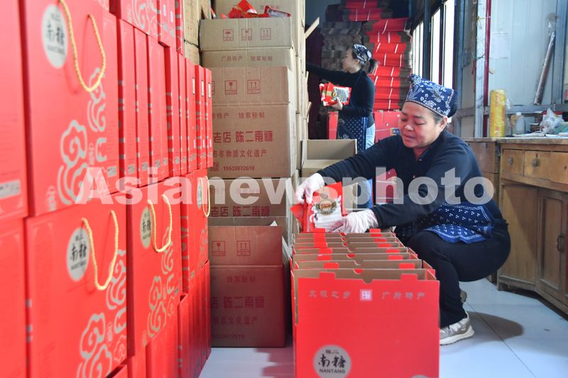 图片说明:12月18日,河北省邯郸市永年区广府镇东街村的村民正在将陈二南糖装箱。