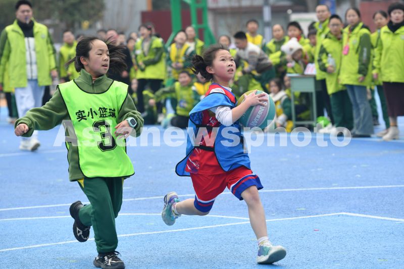 2024年12月18日,在四川省南充市蓬安县实验小学冬季运动会上,学生在进行篮球比赛。