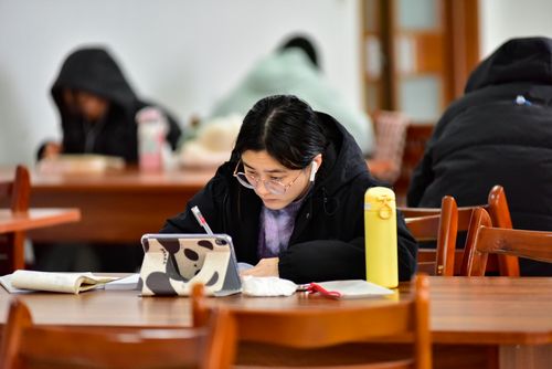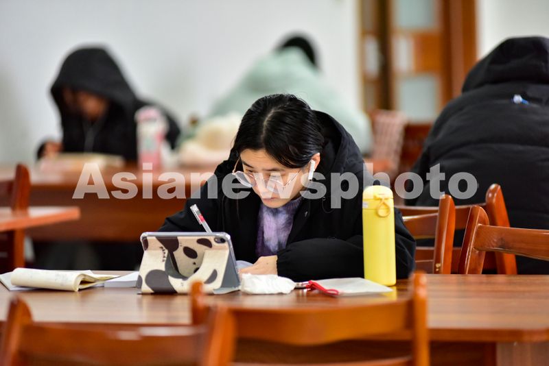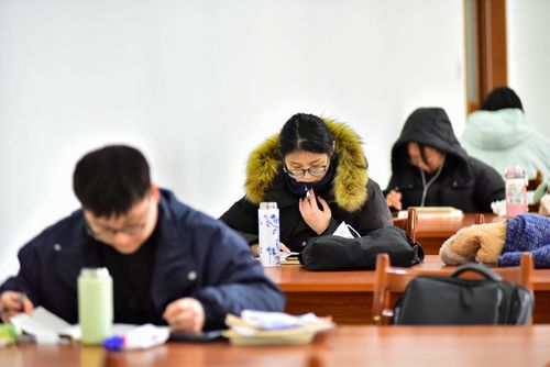 图片说明:2024年12月19日,山东省青州市图书馆,考研学生在复习备考。
