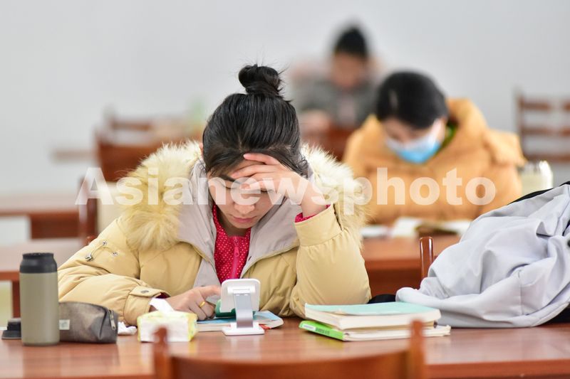 图片说明:2024年12月19日,山东省青州市图书馆,考研学生在复习备考。