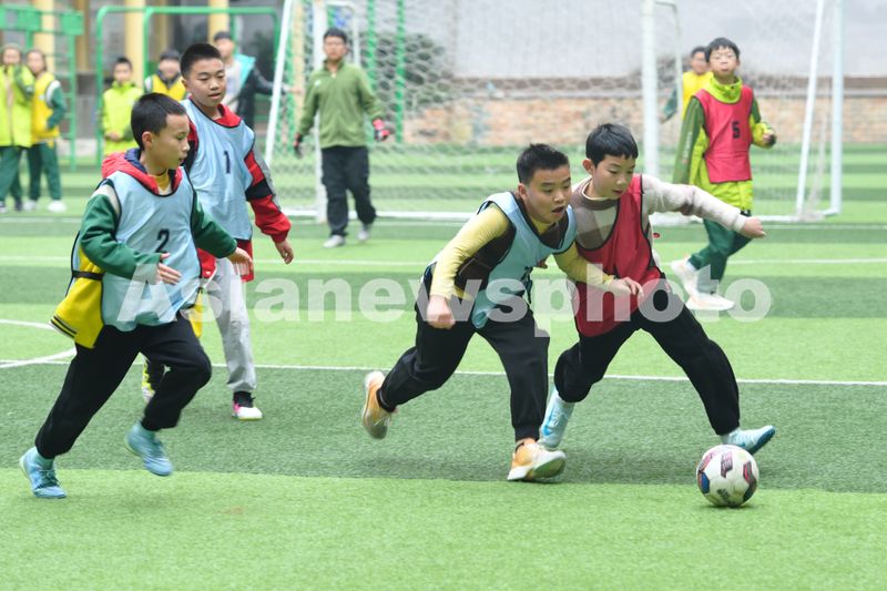 2024年12月18日,在四川省南充市蓬安县实验小学冬季运动会上,学生在进行足球比赛。