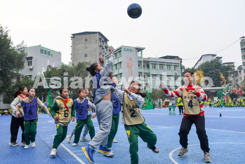 2024年12月18日,在四川省南充市蓬安县实验小学冬季运动会上,学生在进行篮球比赛。