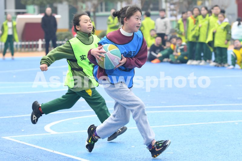 2024年12月18日,在四川省南充市蓬安县实验小学冬季运动会上,学生在进行篮球比赛。