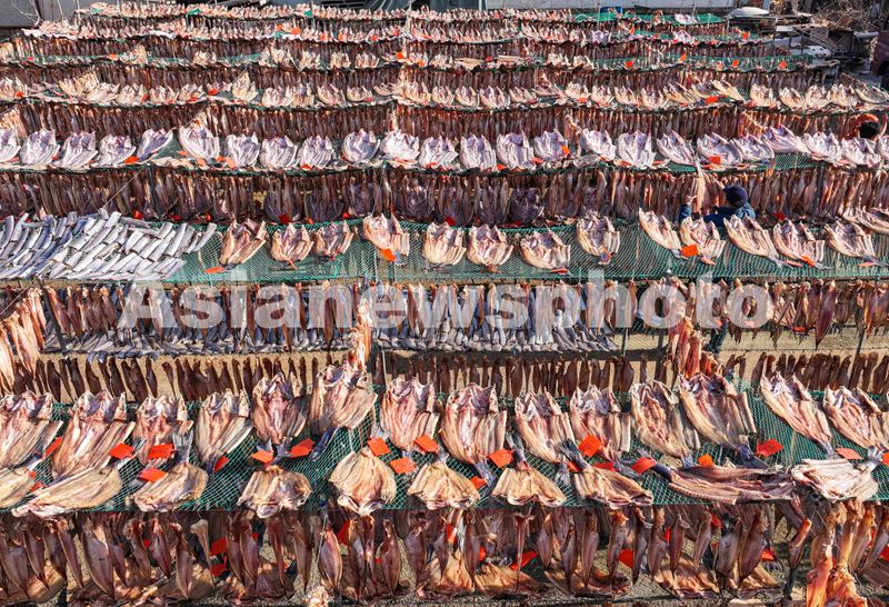 2024年12月19日,山东省荣成市石岛管理区王连街道北桥头村一处渔家小院,农户利用晴好天气,抓紧时间晾晒鱼干,供应市场。当地渔民利用传统工艺制作的“回水鱼干”有上千年历史,被列为省级非物质文化遗产名录。近年来,当地渔民通过网络直播、开网店等渠道,将特色鱼干远销各地。