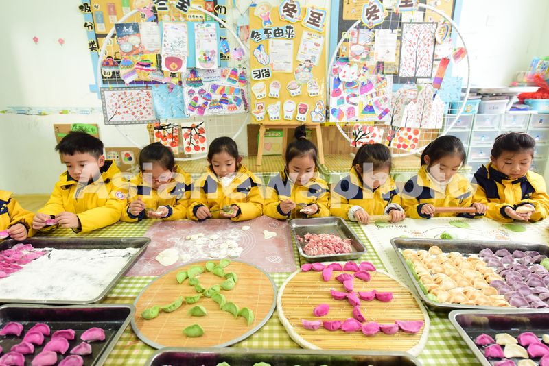 图片说明:2024年12月19日,江苏省连云港市东海县牛山街道南湖尚苑幼儿园小朋友们正在包饺子。