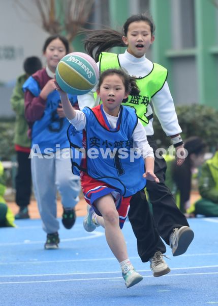 2024年12月18日,在四川省南充市蓬安县实验小学冬季运动会上,学生在进行篮球比赛。