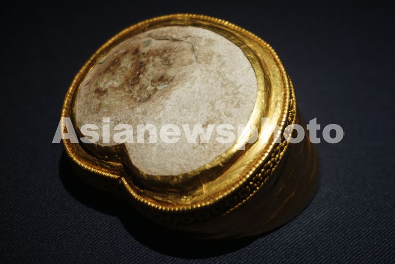 2024年12月19日,在良渚博物院展出的西汉嵌玉马蹄金。