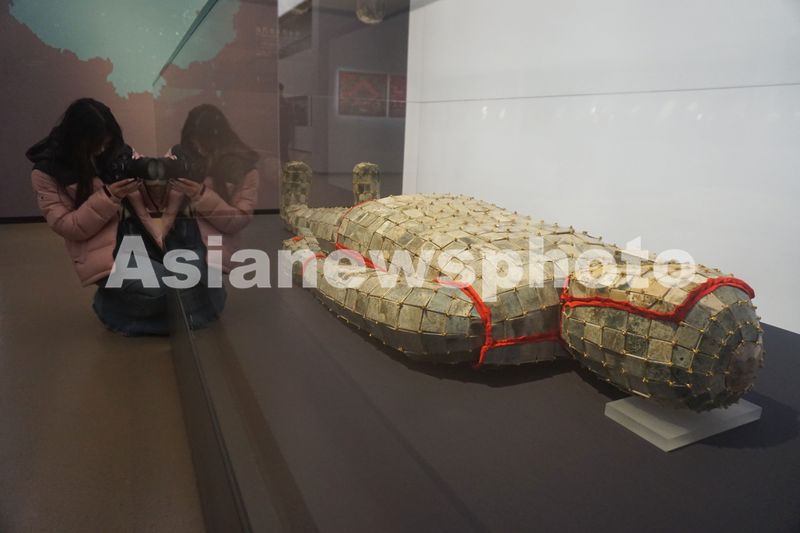 2024年12月19日,观众在良渚博物院观看西汉的金缕玉衣。